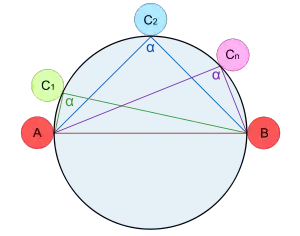 El segundo teorema de Tales confirma lo anterior: «todo ángulo inscrito en un semicírculo es un ángulo recto».