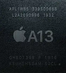 El Apple A13 Bionic es un SoC ARM de 64 bits, diseñado por Apple Inc.[1] Aparece en el iPad (9.ª generación), iPhone 11, 11 Pro/Pro Max[2] y el iPhone SE (2.ª generación).[3] Apple afirma que los dos núcleos de alto rendimiento son un 20% más rápidos con un 30% menos de consumo de energía que los de Apple A12, y los cuatro núcleos de alta eficiencia son un 20% más rápidos con un 40% menos de consumo de energía que los A12.