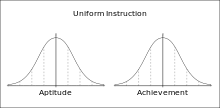 La motivación del aprendizaje para el dominio proviene de intentar reducir la brecha existente en logros académicos para los alumnos de aulas de colegios normales. Durante los as 60 John B. Carroll y Benjamin S. Bloom señalaron que, si los estudiantes están normalmente distribuidos respecto a la aptitud para una asignatura y si se les provee una instrucción uniforme (en términos de calidad y tiempo de aprendizaje), entonces el nivel de consecución de competencia en esa materia se espera que también tenga una distribución normal. Esto puede ilustrarse como se muestra abajo: