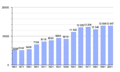 | Gráfica de evolución demográfica de Apricena entre 1861 y 2001 |