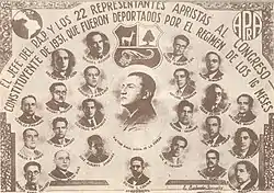El aprismo es una ideología política proyectada a escala continental ideada por el pensador y político peruano Víctor Raúl Haya de la Torre, mediante la Alianza Popular Revolucionaria Americana, cuyo fin era el de formar un pensamiento auténticamente latinoamericano que funcionase como alternativa a la cosmovisión eurocentrista americana, adaptado y adaptable a su realidad espacio-temporal y como foco de lucha antiimperialista y antioligárquica en el que se uniesen en un frente único los "Trabajadores Manuales e Intelectuales",[2] término por el cual se incluían a todas las clases sociales.