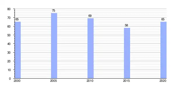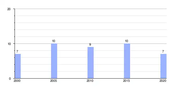| Gráfica de evolución demográfica de Arada (aldea) entre 2000 y 2020 |