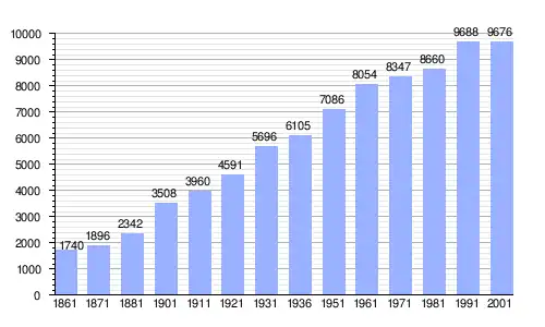 | Gráfica de evolución demográfica de Aradeo entre 1861 y 2001 |