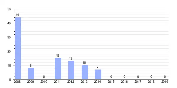 Deuda viva del Ayuntamiento de Aragüés del Puerto en miles de Euros según datos del Ministerio de Hacienda y Ad. Públicas.[11] |