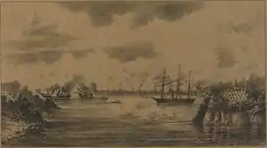 ![]() La cañonera Araguary atrapando chatas paraguayas en la noche del 11 de junio de 1865. | ||