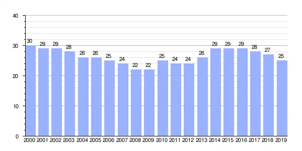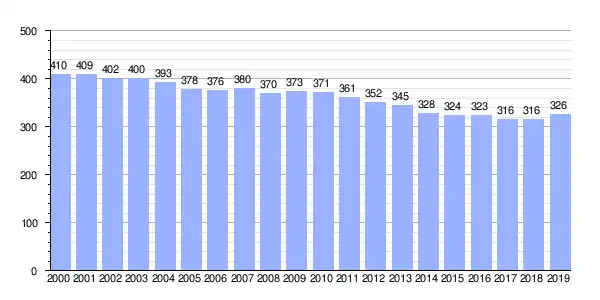 | Gráfica de evolución demográfica de Arantón (lugar) entre 2000 y 2019 |