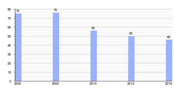 | Gráfica de evolución demográfica de Aranza entre 2000 y 2019 |