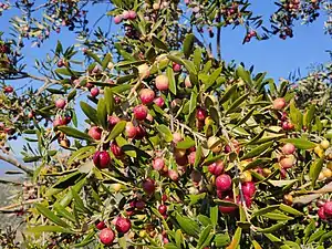 ![]() Detalle de aceitunas arbequinas maduras. | ||