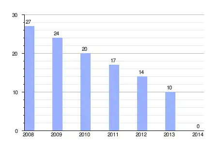 | Gráfica de evolución de la deuda viva del ayuntamiento entre 2008 y 2014 |