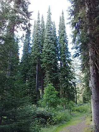 ![]() Grupo de abetos de Douglas en el Mustilan Kotikunnassäätiö. | ||