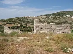 El muro de Aya Tríada, cerca del pueblo. Al fondo se ve el pueblo de Rajules.