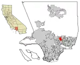 Ubicación en el condado de Los Ángeles y en el estado de California