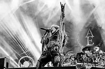 ![]() Formación actual de Arch Enemy, de izquierda a derecha, Sharlee D'Angelo, Jeff Loomis, Alissa White-Gluz, Daniel Erlandsson y Michael Amott. | ||