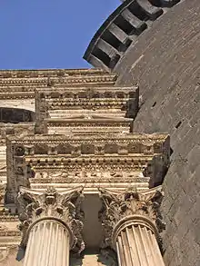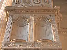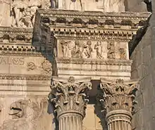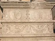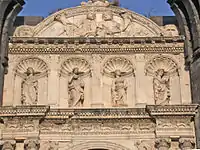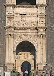 El arco superior fue coronado con una serie de hornacinas con estatuas cubiertas por un tímpano con forma de arco, que retoma el estilo de Donatello.[1]