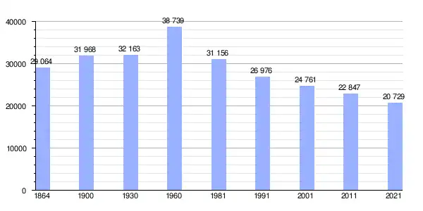 | Gráfica de evolución demográfica de Arcos de Valdevez entre 1864 y 2021 |