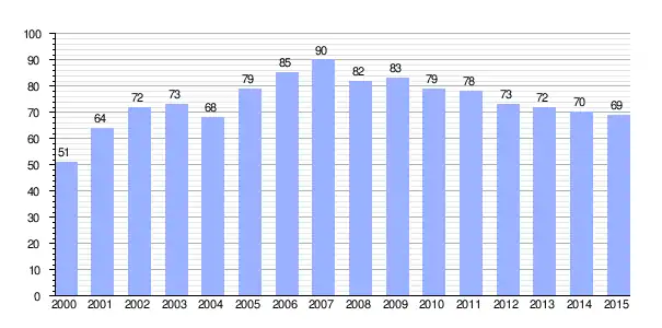 | Gráfica de evolución demográfica de Ardanaz entre 2000 y 2015 |