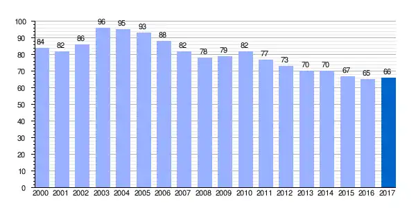| Gráfica de evolución demográfica de Arenillas de Muñó entre 2000 y 2017 |
