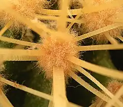 El meristema que se encuentra en la areola da origen a espinas y, en la subfamilia Opuntioideae, también a gloquidios, los cuales son pequeñas espinas desprendibles que constituyen una forma de protección extra. Otra estructura que se produce en el meristema areolar es el tricoma, que, dependiendo de su aspecto y consistencia, se suele definir como lana, fieltro o cerda. Por último, aunque no menos importante, el meristema de la areola también da origen a las flores en la mayoría de las especies de cactáceas, con algunas excepciones notables.[1]