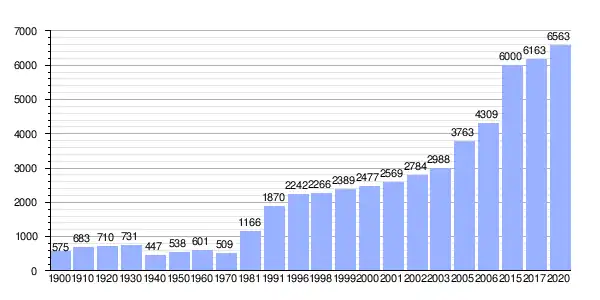En la siguiente tabla se muestra la evolución del número de habitantes desde 1900 hasta el año 2020 según datos del INE.