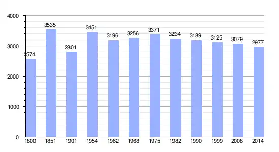 Los datos demográficos contemplados en este gráfico de la comuna de Argentat[4] se han cogido de 1800 a 1999 de la página francesa EHESS/Cassini, y los demás datos de la página del INSEE.[5]