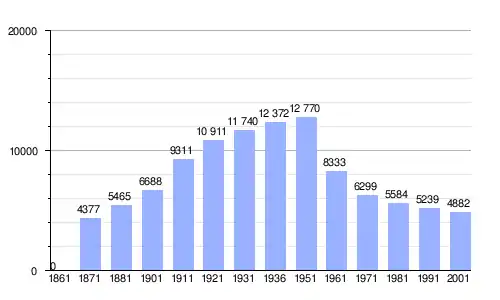 | Gráfica de evolución demográfica de Ariano nel Polesine entre 1861 y 2001 |