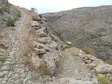 El paisaje está dominado por profundos barrancos y los restos de coladas volcánicas, con abundantes bancales que permiten el cultivo de vides, papas y tomates.