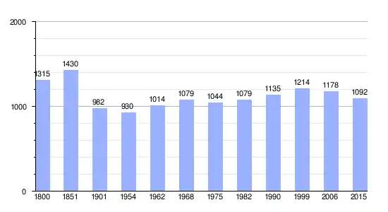 | Gráfica de evolución demográfica de Arinthod entre 1800 y 2015 |