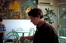 ![]() Arménio Vieira en el café Cachito en Praia. | ||