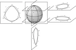 Los armónicos esféricos son fáciles de visualizar contando el número de cruces por cero que ellos tienen tanto en dirección de las latitudes como de las longitudes. Para la dirección en las latitudes, las funciones asociadas de Legendre tienen ceros, mientras que en sentido longitudinal, las funciones trigonometricas seno y coseno tienen ceros.