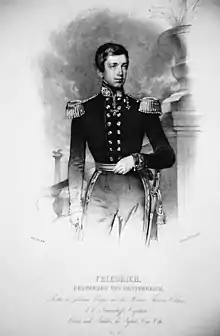 En 1844 el Archiduque Federico fue promovido al rango de Vicealmirante y tomó el cargo de Comandante en Jefe de la armada imperial a la edad de veintitrés años. Como Comandante en Jefe, introdujo grandes modernizaciones y reformas, haciendo la armada menos veneciana y más austriaca, porque la percepción general era que la armada estaba compuesta por tripulación y barcos venecianos navegando bajo bandera austríaca. Federico fue muy consciente de que la marina austríaca, dentro de las fuerzas armadas imperiales constituyó un sistema secundario, sin embargo, tuvo un entusiasta interés en la flota, y con él, la fuerza naval austriaca tuvo su primer apoyo directo obtenido de un archiduque. Pero su periodo como jefe de la armada sería corto ya que murió en 1847.