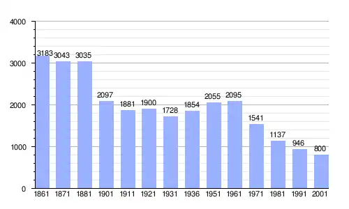 | Gráfica de evolución demográfica de Armento entre 1861 y 2001 |