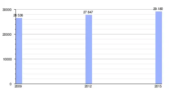 | Gráfica de evolución demográfica de Arniquet entre 2009 y 2015 |