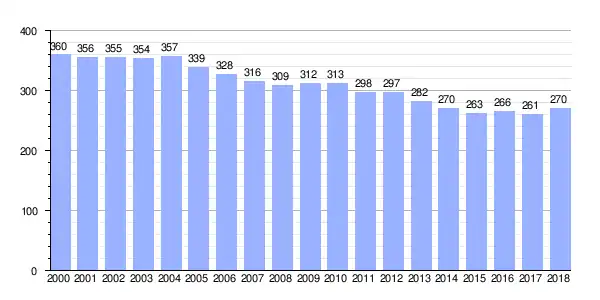 | Gráfica de evolución demográfica de Aro (parroquia) entre 2000 y 2018 |