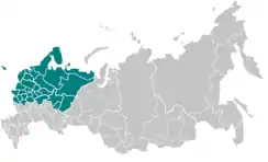 - Óblast de Arcángel, Múrmansk, Leningrado, Nóvgorod, Pskov, Tver, Vólogda, Kostromá, Yaroslavl, Smolensk, Kaluga, Moscú, Kírov, Nizhni Nóvgorod, Ivánovo, Briansk, Kursk, Oriol, Lípetsk, Tula, Riazán, Vladímir y Kaliningrado.