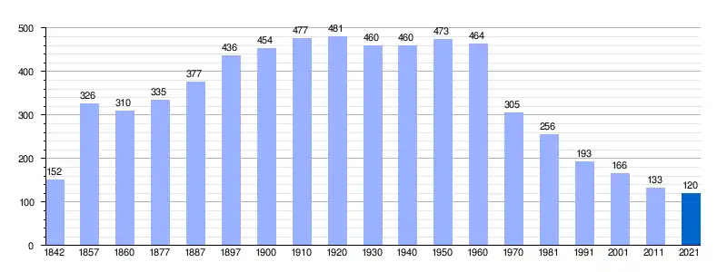 Población de derecho (1842-1991, excepto 1857 y 1860 que es población de hecho) o población residente (2001-2011) según los Censos de Población desde 1842. Población según el padrón municipal de 2021 del INE. |
