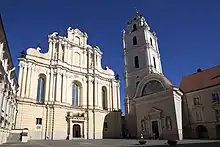 Un estilo notable de arquitectura barroca surgió en el siglo XVIII con el trabajo de Johann Christoph Glaubitz, a quien se le asignó la tarea de reconstruir Vilnius, la capital del Gran Ducado de Lituania. Por ello a ese estilo se le denominó barroco vilniano, y la antigua Vilnius fue nombrada la «ciudad del barroco».[13] Los edificios más notables de Glaubitz en Vilnius son la Iglesia de Santa Catalina, iniciada en 1743,[14] la Iglesia de la Ascensión, que se inició en 1750, la Iglesia de San Juan, la puerta del monasterio y las torres de la Iglesia de la Santísima Trinidad. La magnífica y dinámica fachada barroca de la antigua iglesia gótica de San Juan se menciona entre sus mejores obras. Muchos interiores de iglesias, incluido el de la gran Sinagoga de Vilna, fueron reconstruidos por Glaubitz, así como el Ayuntamiento construido en 1769. El mejor ejemplo del barroco vilniano en otros lugares es la Catedral de Santa Sofía en Polotsk, que fue reconstruida entre 1738 y 1765.
