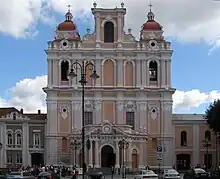 - iglesia de Santa Teresa en Vilnius, de tres naves con una cúpula no muy alta, construida en los años 1635-1650. No se sabe con certeza quién fue su diseñador, aunque se menciona con bastante frecuencia a Jan Józef Urlach. La solución de la fachada es probablemente obra de Konstanty Tencall.