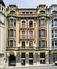 Manuel del Busto trajo el movimiento Art Decó a Asturias tras su visita a Nueva York cuando residía en Cuba durante los años 1920,[33] dejando una importante huella principalmente en Oviedo y Gijón a pesar de la poca influencia de este estilo en España. En la capital del Principado la conocida como Casa Blanca es el edificio más representativo, sin olvidar la Casa Roja,[34] el Edificio Chile y el edificio de la calle Palacio Valdés 13. En Gijón los edificios de las calles Asturias, 4 o Cabrales, 62 son los más destacados. Existen pequeños detalles art-decó en otras localidades asturianas. Ejemplos más tardíos serían los edificios de las calles Ruperto Velasco 2 y Álvarez Garaya 13. En esta arquitectura destacan las líneas geométricas con símbolos y representaciones de inspiración exótica: precolombina y egipcia.