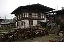 Una casa en el distrito de Bumthang: véase el uso de la piedra en la pared exterior.