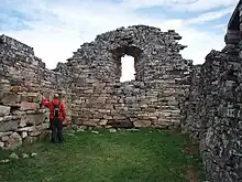 Este edificio tiene características propias de las construcciones noruegas y de las islas del norte de Escocia, por lo que se «asume» que un arquitecto de dichas zonas estuvo involucrado en la construcción. Como era habitual, la estructura es de piedras de granito aledañas; la mampostería sigue en pie y cuenta con frontones de hasta 5.5 m de alto.[5]