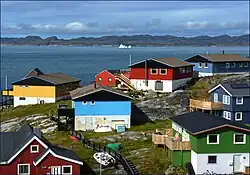 La arquitectura de Groenlandia viene marcada por los diferentes habitantes que llegaron a la isla a lo largo de su historia, además de los desafíos climáticos dada su ubicación casi total en el círculo polar ártico. Los primeros pobladores inuit introdujeron alrededor del año 1000 tiendas de pieles, casas de turba o iglús, que se adecuaban a su estilo de vida seminómada. Los asentamientos vikingos de la misma época marcaron la entrada de construcciones cristianas y granjas levantadas en piedra. A partir del siglo XVIII, con la colonización danesa se comenzaron a importar desde Escandinavia las distintivas casas de madera de colores.[1][2]