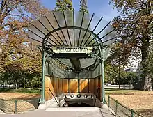 En 1899 la empresa que estaba construyendo el nuevo Metro de París, la Compagnie du chemin de fer métropolitain de Paris (CMP), convocó un concurso para el diseño de las nuevas edicules o entradas de las estaciones que se construirían por toda la ciudad. Las reglas del concurso exigían que las nuevas entradas «no afearan ni entorpecieran el paso del público por las estaciones; al contrario, deberían entretener al ojo y embellecer las aceras».[20] El vencedor del concurso fue Guimard, considerado el arquitecto más audaz de la época. El inconfundible estilo de sus entradas las hizo fácilmente identificables desde la distancia, otro de los requisitos del concurso. Guimard diseñó una serie completa con diferentes variaciones, desde una escalera con una barandilla pequeña y simple hasta un gran pabellón para la Place de la Bastille. Las entradas de Guimard, con sus colores, materiales y formas, estaban en armonía con los edificios de piedra de las calles de París e incluso, con sus curvas vegetales, encajaban bien con los árboles y jardines.