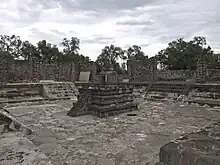 Los santuarios o templos que coronaban las pirámides no resistieron el paso del tiempo; el estudio de arqueólogos e historiadores sobre las ruinas actuales hace suponer que eran edificios oscuros y estrechos, concebidos para ser contemplados y ser testigos de ceremonias religiosas, pero nunca para ser vividos.[1] Sin embargo las estructuras de los edificios residenciales de los barrios de la periferia y del propio centro ceremonial, son diferentes, con un diseño pensado y adaptado a la medida y exigencias del hombre que los habitaba. Generalmente estas viviendas se desarrollaban en torno a un patio de nivel más bajo al que se accedía bajando uno o más escalones. En las casas de los barrios de la periferia vivían grupos de personas que podían estar relacionados por lazos familiares o por lazos de trabajo. En los patios se han encontrado vestigios de altares ceremoniales destinados al culto religioso íntimo y privado.