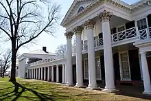 La Arquitectura jeffersoniana es una forma estadounidense de neoclasicismo y/o neopalladianismo encarnado en los diseños arquitectónicos del presidente y erudito de los Estados Unidos, Thomas Jefferson, de quien lleva su nombre. Estos incluyen su casa (Monticello), su retiro (Poplar Forest), la universidad que fundó (Universidad de Virginia) y sus diseños para las casas de amigos y aliados políticos (especialmente Barboursville). Más de una docena de casas particulares que llevan su sello personal siguen en pie hoy. El estilo de Jefferson fue popular en el período estadounidense temprano casi al mismo tiempo que la arquitectura del neogriego más convencional también se estaba poniendo de moda (1790-1830) con su ayuda.