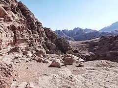 En esta región se encuentra un templo con un camino procesional de 20 m de largo que conduce a un patio con vista a Jebel Qalkha. El diseño de los betilos, así como los restos de la ofrenda, apuntan a la posible adoración de Dushara, tal vez incluso de Júpiter.