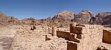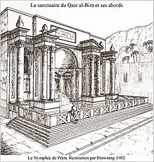 Templos similares a los ubicados cerca de Petra en Wadi Rumm, Dharih, Tannur y Qasrawet. La inscripción nabatea indica cultos dedicados a Allat y Baalshamin.[21]