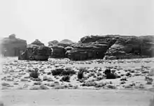 Hegra (en árabe: ٱلْحِجْر), ahora conocida como Mada’in Saleh[19][20] (en árabe: مَدَائِن صَالِح, romanizado: Madāʼin Ṣāliḥ, lit. 'ciudades de Salih'),[28] es un sitio arqueológico ubicado en el área de al-'Ula dentro de la provincia de Medina, en la histórica región del Hejaz, ahora Arabia Saudita. La mayoría de los restos datan del reino nabateo (siglo I d. C.). El sitio constituye el asentamiento más al sur del reino y su segunda ciudad más grande después de Petra (ahora en Jordania), su ciudad capital.[29] También se pueden encontrar rastros de la ocupación lihyanita y romana antes y después del gobierno nabateo, respectivamente.