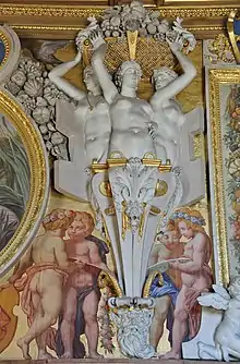 Parte inferior: Palas rodeada por dos figuras femeninas aladas (1546).