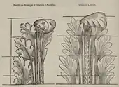Relación entre un dibujo de Cesariano de 1521 y los capiteles jónicos del Hôtel de Pins (circa 1530).