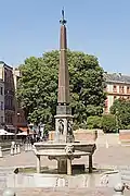 Ya en 1545, los capitouls emprendieron importantes trabajos para restaurar un antiguo acueducto romano que llevaba las aguas de una colina alta al sitio de la catedral. Una primera fuente pública fue instalada por el escultor Jean Rancy en 1549, reemplazada en 1593 por algunos de los elementos de la fuente actual: un obelisco de mármol rojo de Cierp (en los Pirineos), colocado sobre un pedestal excavado con cuatro nichos que albergan niños de bronce, cada uno sosteniendo una jarra y orinando como el Manneken-Pis. En 1649, vandalizados, fueron restaurados por Pierre Affre, quien reemplazó las jarras por serpientes. Solo en el siglo XIX se modificaron ligeramente los niños para no ofender la modestia. Otros elementos fueron agregados o reemplazados a lo largo de los siglos (como lo ilustra la multiplicación de fechas en las diferentes partes de la fuente).[2]
